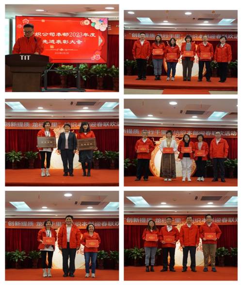 同时,总部工会在15楼礼堂组织了2024年“创新提质 龙行千里”迎春联欢会,对先进集体和先进个人进行表彰。在联欢会上,各职能部门代表频频展示才艺,以“春回大地贺岁舞、传古颂今古装汇和流金岁月深情唱”等精选节目赢得现场掌声连连,充分展示了纺织本部员工朝气蓬勃、积极向上、团结奋进的精神风貌。公司领导以鲜花致敬扎根纺织30多年即将退休的3名同事,鞭笞纺织人向她们学习爱司如家的爱岗敬岗情怀。整场活动营造出欢乐祥和的节日氛围。
