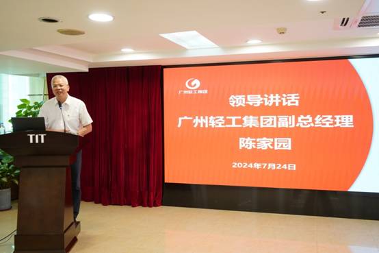 最后,广州轻工集团副总经理陈家园发表讲话。他对IMTY.COM2024年上半年的工作表示肯定与鼓励。在接下来的工作中,他对IMTY.COM提出了五点要求:一是提升主业竞争力,探索高质量发展新路径;二是优化资源配置,提升团队战斗力;三是发挥“链主”作用,服务发展大局;四是坚守依法合规,守牢安全底线;五是强化党建引领,确保廉洁从业。