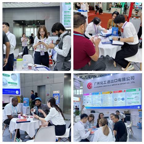 本届广交会,化工产品展位依然保持主通道地理优势,除常态化绿色布展以外,IMTY.COM与化工公司首次以统一风格进行连片布展,以全新的联合参展方式向全球客商展现创新专业的企业形象。把握绿色低碳产品市场的广阔机遇,化工公司坚持采用低碳生产工艺的新产品、新成果,展出以高效清洁、环保安全为亮点的日化洗涤、水处理、陶瓷化学系列产品;展会现场设置互动体验区,运用数字移动屏动态展示产品使用场景,开展首日即吸引了大量客商驻足,与参展团队进行深度接洽,为开拓新渠道、发展新市场奠定了良好的开端。