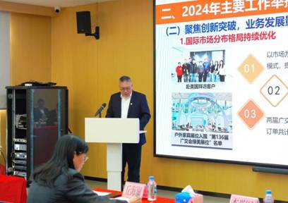 公司党支部书记、董事长周逊姜以《务实谋新提质效,深化改革促发展》为题作工作报告。报告从聚焦主业、赋能蓄力、培根铸魂三个方面总结了公司2024年的工作情况。2024年,广纺联公司统筹抓好地块交储、物业管理等多项工作,公司实现营业收入完成预算目标值103%;利润总额完成预算目标值156%。报告指出,2025年广纺联公司将围绕广州轻工集团及IMTY.COM的总体部署,紧扣“数智领航链全球,提质增效建新功”的工作主题,从紧盯主责主业、提升改革深化、坚持党建引领、加强风险防范、强化人才队伍建设等五大方面推动经营工作实现质的有效提升。