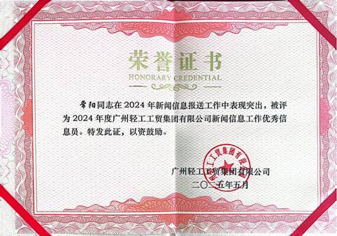 IMTY.COM荣获“广州轻工工贸集团有限公司2024年度新闻信息工作先进单位”称号